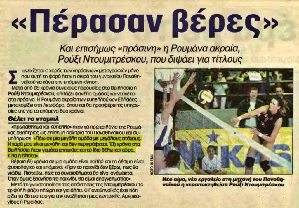 H 17η Ιουλίου 2003 θα αποτελεί πάντοτε μια ΞΕΧΩΡΙΣΤΗ ημερομηνία για τον ΠΑΝΑΘΗΝΑΪΚΟ ΑΘΛΗΤΙΚΟ ΟΜΙΛΟ. Και αυτό γιατί σαν σήμερα πριν από 22 χρόνια η ΤΕΡΑΣΤΙΑ Ρούξι Ντουμιτρέσκου περνούσε τις… πύλες του ΒΑΣΙΛΕΙΟΥ της.