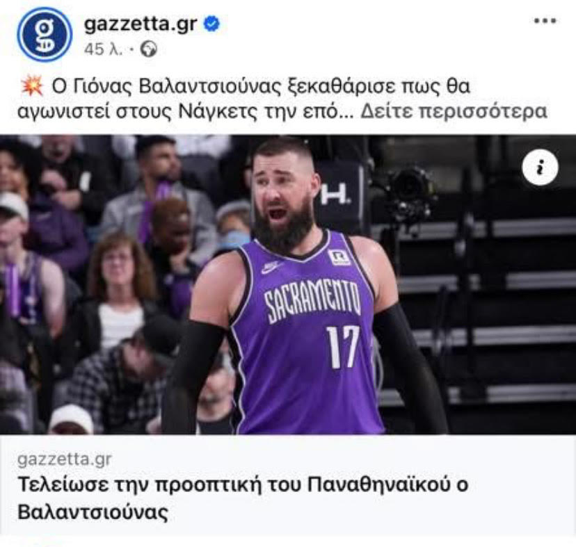 Και δεν πονάει μονάχα για όσα τους έχουμε κάνει, ΚΟΚΚΙΝΙΖΟΝΤΑΣ τον σβέρκο τους από ΦΑΠΑ. ΠΟΝΑΕΙ ΚΑΙ για την περίπτωση Βαλαντσιούνας. Γιατί το συγκεκριμένο «σίριαλ» που δεν καρποφόρησε τελικά εξαιτίας του ΛΑΘΟΥΣ να έρθει ο παίκτης στην Αθήνα μετά το trade στους πρωταθλητές ΝΒΑ του 2023, αποτέλεσε μιας ΠΡΩΤΗΣ ΤΑΞΕΩΣ ΔΙΑΦΗΜΙΣΗ για τον ΠΑΝΤΟΚΡΑΤΟΡΑ της Ευρώπης στην άλλη άκρη του Ατλαντικού.