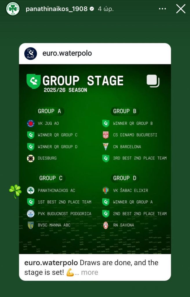 Σήμερα το μεσημέρι, «κλήρωσε» για την ομάδα πόλο, σε ότι αφορά τους ομίλους του Euro Cup και ΟΛΑ συνεχίζουν να… συνηγορούν στη μεγάλη αισιοδοξία που έχουμε.