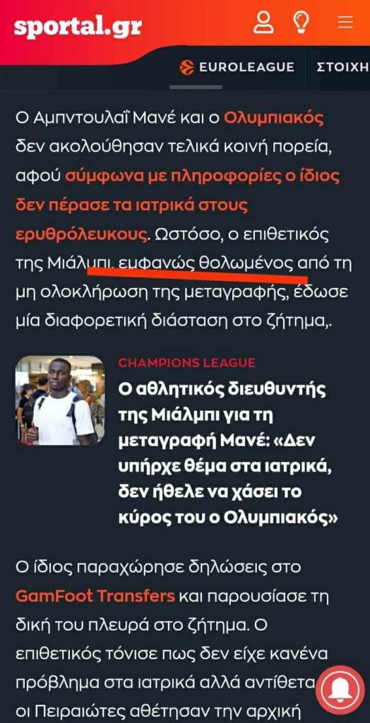 ΕΝΑ ΕΥΡΗΜΑ, ΚΥΡΙΕΣ ΚΑΙ ΚΥΡΙΟΙ ΑΝΑΓΝΩΣΤΕΣ, ΧΑΛΑΣΕ ΤΗΝ… ΜΕΤΑΓΡΑΦΗ ΚΑΠΟΙΟΥ ΜΑΝΕ. ΜΕ ΤΟ SPORTAL ΣΥΓΚΕΚΡΙΜΕΝΑ ΝΑ ΤΟΝ… ΧΑΡΑΚΤΗΡΙΖΕΙ ΘΟΛΩΜΕΝΟ (!!!!!!!) ΟΤΑΝ ΠΗΓΕ ΝΑ… ΨΕΛΛΙΣΕΙ ΤΗΝ ΕΚΔΟΧΗ ΤΟΥ ΠΟΔΟΣΦΑΙΡΙΣΤΗ ΓΙΑ ΤΟ ΤΙ ΑΚΡΙΒΩΣ ΣΥΝΕΒΗ !