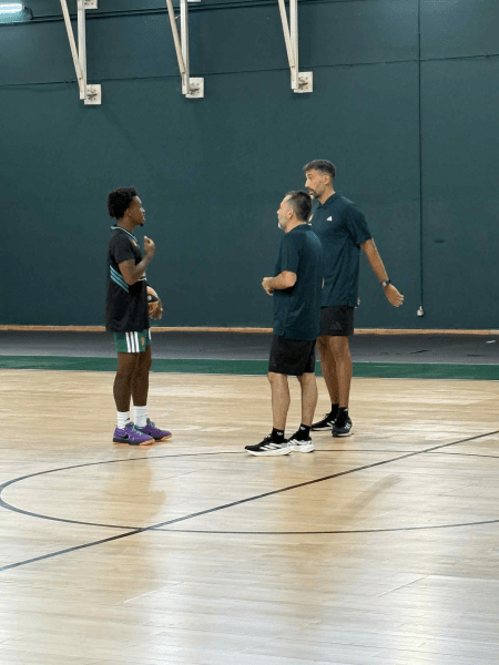 «Το πρώτο που παρατηρώ είναι το πόσο συμμετέχει το «5» εδώ. Στην Αμερική ανοίγει χώρο για το «4», καρφώνει, δίνει χώρο στο γκαρντ. Εδώ συμμετέχει πιο πολύ, είναι στο half-post και πολλά pick-n-roll. Μου ταιριάζει».
