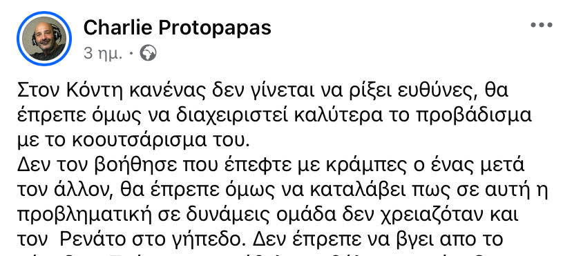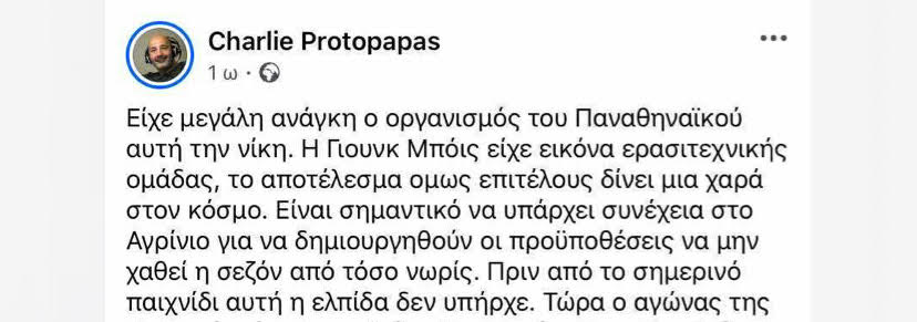 ΒΕΒΑΙΑ, ΣΗΜΕΡΑ, και εδά δεν αναφέρομαι μονάχα στον… Τσάρλυ, ΚΑΝΕΙΣ ΤΟΥΣ ΔΕΝ ΒΓΗΚΕ ΝΑ ΖΗΤΗΣΕΙ ΜΙΑ… ΣΥΓΝΩΜΗ ΓΙΑ ΤΟΝ… ΡΕΝΑΤΟ ΣΑΝΤΣΕΣ Ή ΤΟΝ… ΖΑΡΟΥΡΙ και ΚΥΡΙΩΣ ΣΤΟΝ ΚΟΣΜΟ ΤΟΥ ΠΑΝΑΘΗΝΑΪΚΟΥ !