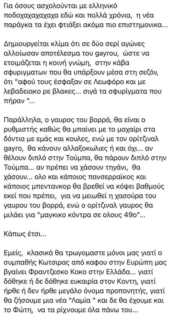 Η… Ιστορία είναι ΑΥΤΗ. Οι ΞΕΦΤΙΛΕΣ της Βορείου Ελλάδος (που γενικά αγαπάμε Βόρειο Ελλάδα), παρέδωσαν τα «σκήπτρα» της ΠΑΡΑΓΚΑΣ του υιού Γκαγκάτση, ο… Απόγονος του Υψηλάντη την ΕΞΕΛΙΞΕ, οι ακόμα περισσότερο Ξ Ε Φ Τ Ι Λ Ε Σ Έλληνες Αρδ τους έκαναν ΣΚΡΙΝ (μπασκετικό κανονικό) και το ελληνικό ποδόσφαιρο έχει βυθιστεί στον ΒΟΥΡΚΟ του ΒΡΩΜΟΣΩΜΑΤΕΙΟΥ, όπως συμβαίνει στο ΜΠΑΝΑΝΙΣΤΑΝ ΑΠΟ ΠΑΝΤΑ ! ! !