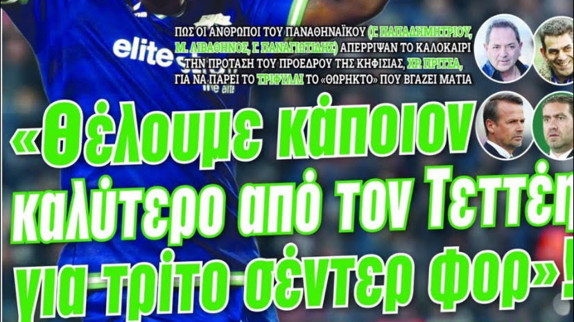Ο Τετέι, όταν ο Παναθηναϊκός ήταν η ομάδα που αναζητούσε μετά μανίας φορ αφού η Φούζα τα είχε ΤΣΕΠΩΣΕΙ ΧΟΝΤΡΑ από την πώληση του Φώτη … σχεδόν… αυτοπροτάθηκε στην ομάδα. Και… σχεδόν πρασίνιζε όπως είχαμε γράψει τότε. Έλειπε… κάτι προφανώς για να ολοκληρωθεί η μεταγραφή για τον ΤΔ (όλοι ξέρουμε ΤΙ), οπότε άρχισαν να… ψελλίζουν κάτι ΓΕΛΟΙΑ του στυλ «ψάχνουμε κάτι καλύτερο για τρίτο φορ». ΔΗΛΑΔΗ ΤΟΝ… ΚΑΝΕΝΑΝ. Εκείνη την χρονική στιγμή μάλιστα μιας… κρίσιμης μελλοντικά μεταγραφής, κατά την ταπεινή μου άποψη, για το ελληνικό ποδόσφαιρο, ο αλαφούζος, ο οποίος φίλε συμβουλεύεται τους Παναγιωτίδηδες αν έχεις τον Θεό σου… αποφάσισε να καυγαδίσει με την… Κηφισιά.