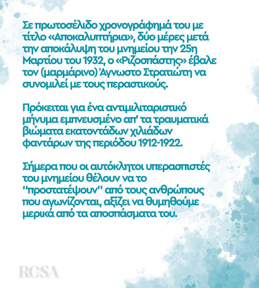 Σήμερα που οι… αυτόκλητοι υπερασπιστές του μνημείου του Άγνωστου Στρατιώτη θέλουν να το «προστατέψουν» από τους ανθρώπους που ΑΓΩΝΙΖΟΝΤΑΙ, αξίζει να γυρίσουμε πίσω στις μέρες των αποκαλυπτηρίων του…