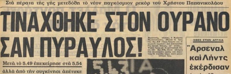 Κατόπιν στις 24 Οκτωβρίου 1970, στο τότε Στάδιο «Γεώργιος Καραϊσκάκης» ο αθλητής του Παναθηναϊκού Χρήστος Παπανικολάου έγραψε ιστορία και έκανε παγκόσμιο ρεκόρ στο άλμα επί κοντώ πηδώντας 5 μέτρα και 49 εκατοστά. Ήταν μια ιστορική επίδοση για τον Ελληνικό αθλητισμό και τότε ο Παπανικολάου συνέτριψε το 5.46μ. του Ανατολικογερμανού Βόλφγκανγκ Νόρτβιγκ.