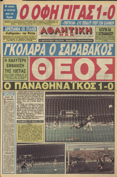 Με μια βολίδα-ΠΟΙΗΜΑ του ΜΕΓΑΛΟΥ «μικρού» του ελληνικού ποδοσφαίρου, του Δημήτρη Σαραβάκου στο 5′, κατατροπώνει με 1-0 την Γιουβέντους στο φλεγόμενο από 70.000 Παναθηναϊκούς Ο.Α.Κ.Α!