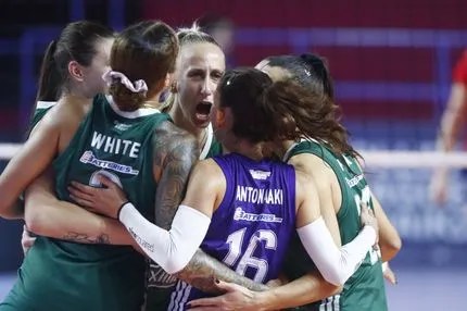 Με την Κωνσταντινίδου στο σερβίς οι «πράσινες» έκαναν το 19-24 και κατέκτησαν το σετ με 19-25.