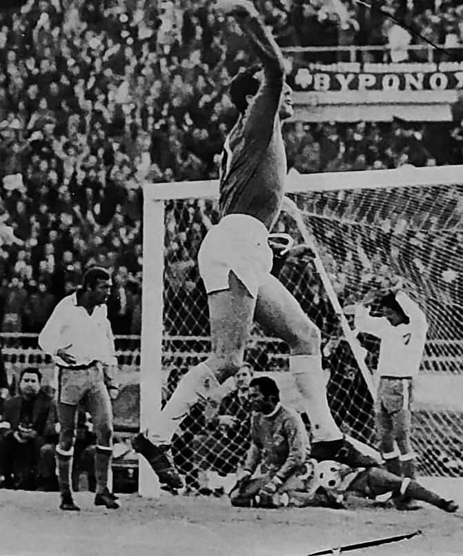 Η ομαδάρα του Φέρεντς Πούσκας έφθασε να αγωνίζεται σ’ έναν παγκόσμιο τελικό, κάτι που μέχρι και λίγους μήνες πριν δεν υπήρχε ούτε σαν τρελό όνειρο στο μυαλό του Δομάζου και της… παρέας του. Το παιχνίδι διεξήχθη στο κατάμεστο από 45.000 φιλάθλους της ομάδας μας στο στάδιο «Καραϊσκάκη». Στο 49’ της αναμέτρησης ο Τότης Φυλακούρης με κεφαλιά άνοιξε το σκορ, για να ισοφαρίσει μόλις τέσσερα λεπτά αργότερα ο Αρτίμε. Ο πρώτος απ’ τους δύο αγώνες με τους Ουρουγουανούς, επισκιάστηκε από τον σοβαρό τραυματισμό του Γιάννη Τομαρά, ύστερα από αντιαθλητικό μαρκάρισμα του Μοράλες.