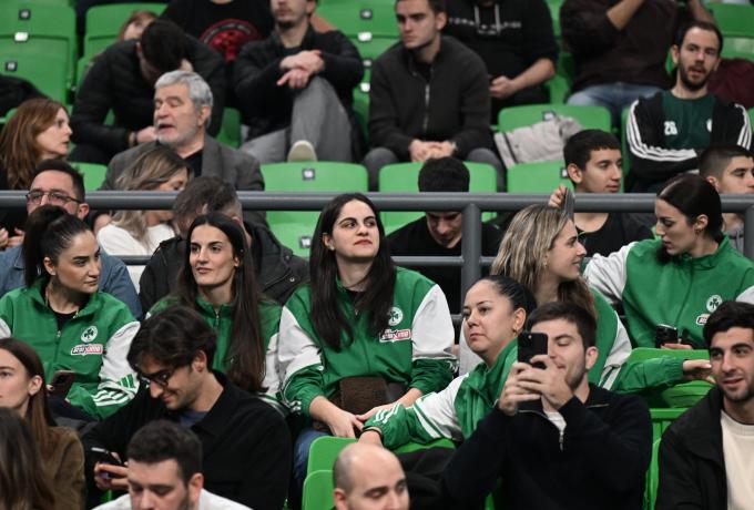 Θερμό χειροκρότημα για τις παίκτριες του μπάσκετ γυναικών στο «T-Center» από τον κόσμο του Παναθηναϊκού.