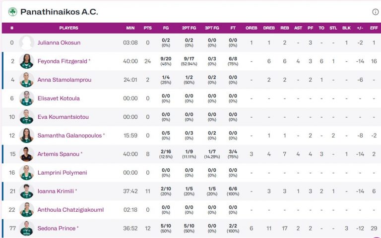Η Φιτζέραλντ πέτυχε 24 πόντους, η Σεντόνα Πρινς πάλεψε και πέτυχε 12 πόντους, το ίδιο και η Ιωάννα Κριμίλη με 11 πόντους.