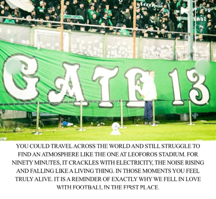 Τα πράσινα και λευκά χρώματα εμφανίζονται παντού: στους τοίχους των καφέ, στα μπαλκόνια, στα κασκόλ που φορούν οι κάτοικοι της πόλης. Όλοι οι δρόμοι οδηγούν τελικά στο Στάδιο Απόστολος Νικολαΐδης, γνωστό απλά ως Λεωφόρος.