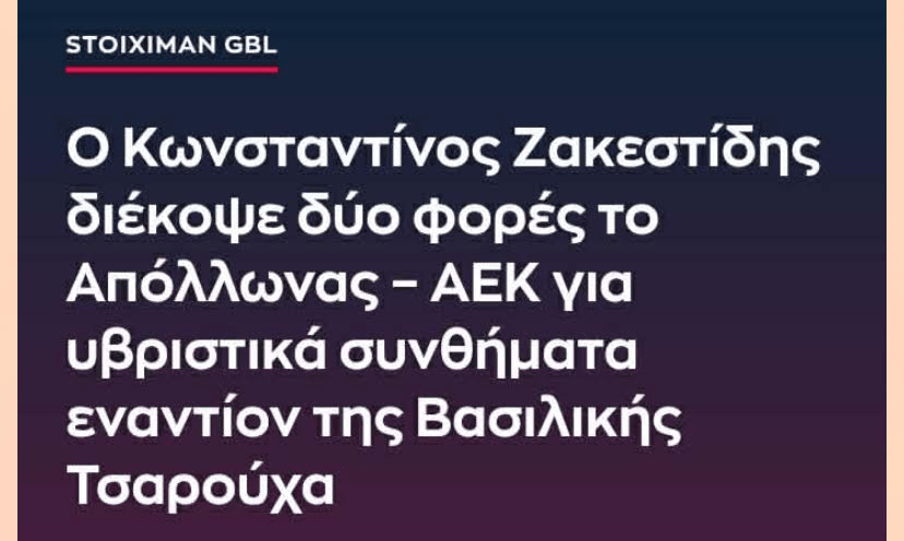 Μάλιστα, ένα απόγευμα, έτσι για την ιστορία, ο Ζακεστίδης είχε φερθεί ως ο… απόλυτος τζέντλεμαν, προστατεύοντας την «Βάσω μου» και τινάζοντας ΣΤΟΝ ΑΕΡΑ ένα ματς της Αεκ.